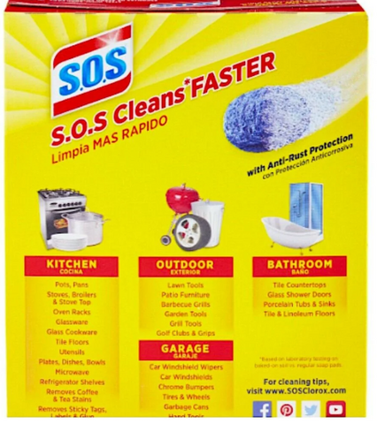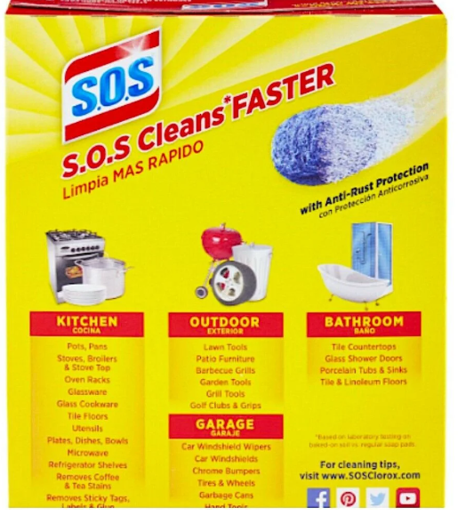 S.O.S soap pads are America’s #1* steel wool soap pad for a reason. Made with powerful, durable steel wool and saturated with long-lasting soap, S.O.S makes all your cleaning jobs quicker and easier. Versatile enough for cleaning indoors and out, S.O.S cleaning pads eliminate tough messes in no time. Regular S.O.S pads quickly cut through baked-on food, grease, grill residue, hard water stains, auto grease and more, letting you enjoy the sparkling clean results.