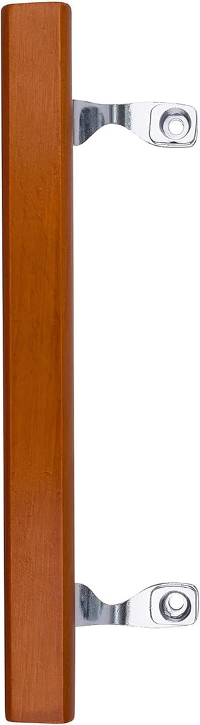 Patio Door Handle with Brackets, Chrome Finish with Wood Grip, 6-5/8" Center-to-Center