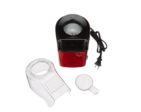 The Red Brentwood Appliances 8-Cup Hot Air Popcorn Maker pops up to 8 cups of healthy, oil free popcorn in just 2 to 3 minutes. Enjoy 4x the savings using loose kernels over microwave bags. The popcorn pops directly into your bowl. Follow the included recipes to create your own gourmet popcorn! The removable parts make cleanup a snap.