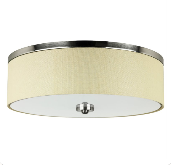 Upgrade your interior lighting with Sunlite's 13-Inch LED Flush Mount Fabric Single Drum Light Fixture. This fixture's frosted acrylic round diffuser offers ideal lighting distribution while still drawing attention to the sleek lines of the brushed nickel mount and centerpiece. Its steel material as the body and blending them with textured fabrics are standard features of this fashionable interior design, frequently coupled with stimulating but not flashy colors. Almost any type of home can benefit from using components of this interior design. These dimmable fixtures let you pick the color temperature during installation. Using a switch within the fixture, you can choose between 3000K Warm White, 4000K Cool White, or even 5000K Daylight depending on your preferences. Designed to be installed with the mounting plate. All it takes is a simple screwdriver to mount the fixture. Twist the center decorative nut to mount the diffuser (installation steps will be included). The lighting output can be changed when connected to an LED-compatible dimmer switch allowing it to adapt to any lighting to suit the mood. ETL Listed for wet location installation. Ideal for Office, Bedrooms, Kitchens, Hallways, Bathrooms, and more. Mounting hardware and installation instructions included. Fixture Dimension 5"H x 13"D.