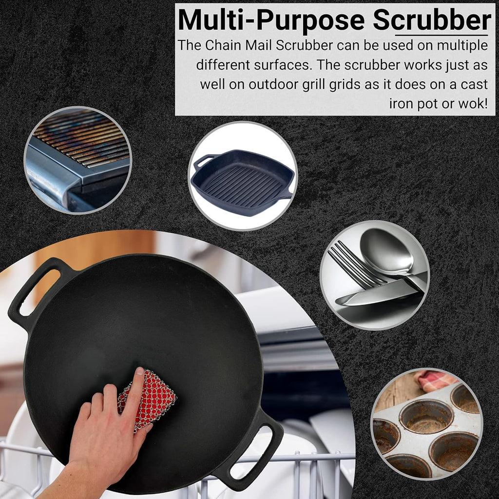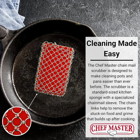Chef Master Chainmail Scrubber | Heavy Duty Cast Iron Pot Scrubber