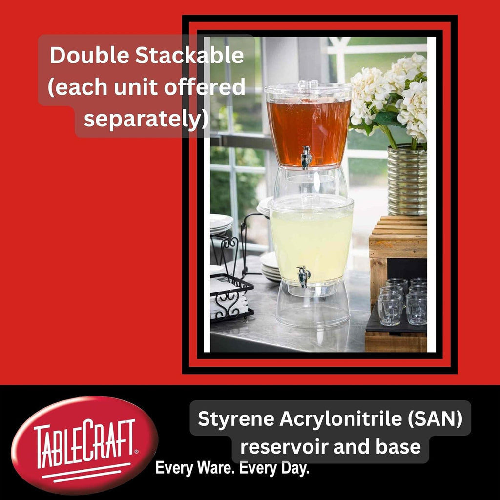 The TableCraft BAD1500 Beverage Dispenser offers a perfect blend of style and functionality, making it an essential addition to any event, whether hosting indoors or outdoors. Crafted from durable SAN plastic, this BPA-free dispenser is both lightweight and compact, designed to serve a variety of refreshing cold drinks while enhancing the visual appeal with its clear, stylish construction. Its compact form is ideal for smaller spaces, making it a versatile choice for gatherings of any size, from intimate parties to larger events.