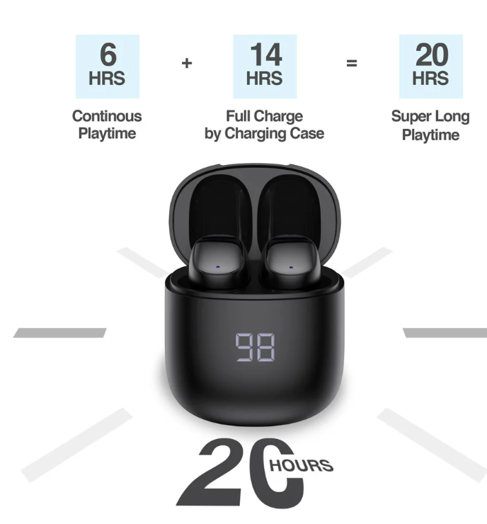 • 6 hours playtime + 14 additional hours with charging case
