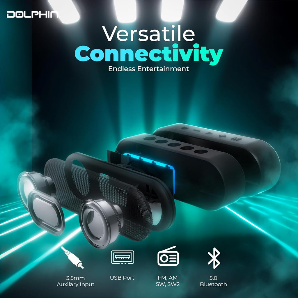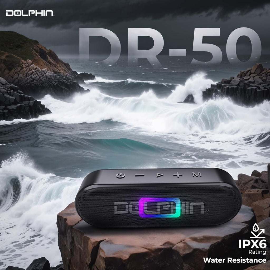 he DR-50 Waterproof Portable Bluetooth Speaker is your perfect companion for travel, fitness, and outdoor adventures. With Bluetooth 5.0, enjoy seamless streaming from your mobile devices up to 18 meters away. Featuring powerful 10W output with dual woofers and immersive sound quality, this compact speaker is designed for both indoor and outdoor use. Its IPX6 waterproof rating ensures it can handle splashes at the beach or pool, while the vibrant LED lights add a visual flair to your music experience. The DR-50 also supports WaveSync technology, allowing you to pair two speakers for an enhanced stereo experience. With a robust 2000mAh battery, enjoy over 10 hours of continuous playtime and recharge easily with the included Type-C cable.