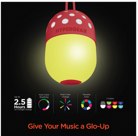 HPL15716, HyperGear 15716 Go-Glo Indoor and Outdoor Bluetooth Light-up-LED 3-Watt Portable Speaker (Red). Manufactured in Country of CHINA
