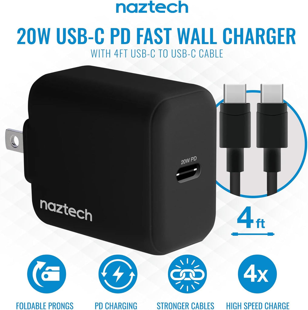Naztech 20W PD Wall Charger + USB-C to USB-C 4ft Cable Black